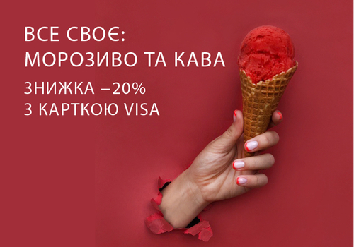 Получите 20% скидки на весь ассортимент в точка продажи Свое. Мороженое и Свой. Кофе по адресам ул. Десятинная, 12 и ул. Крещатик, 27.