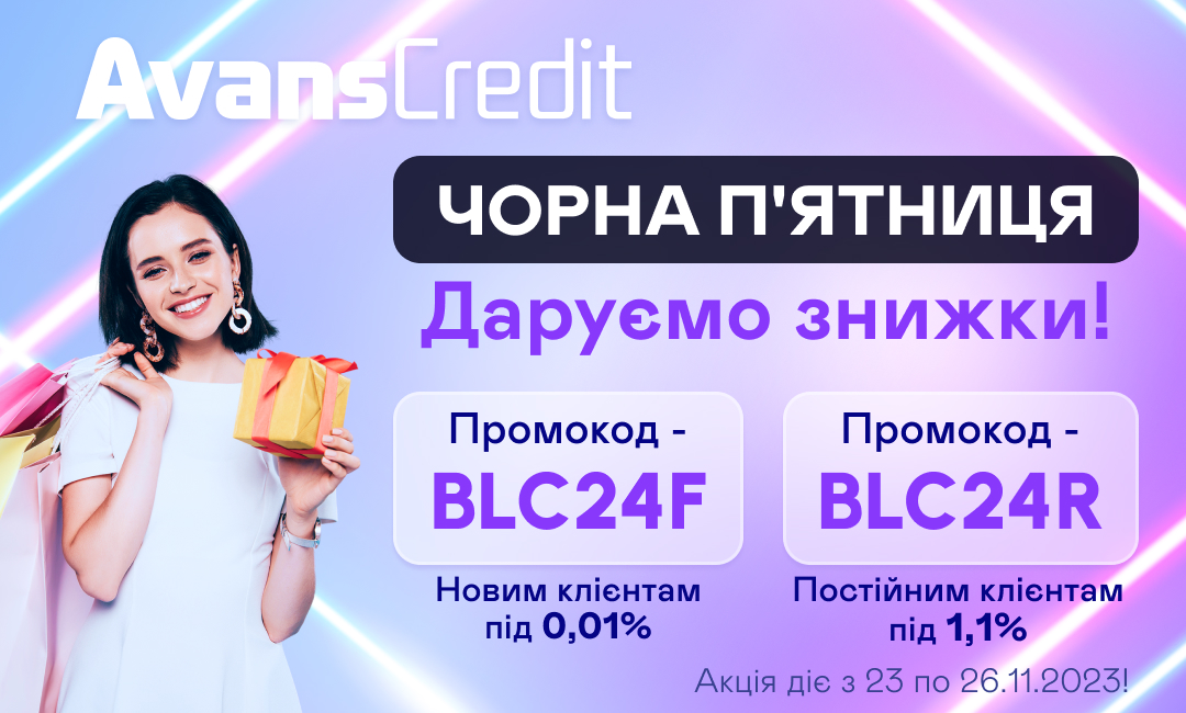 Сервис микрокредитов Avans Credit предлагает специальные промокоды на Черную пятницу. Промокод — BLC24 °F на первый кредит под 0,01%
