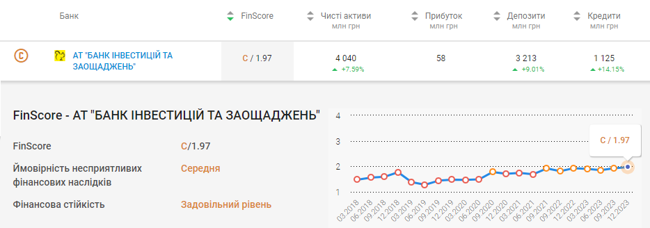 По результатам рейтинга FinScore, составленного аналитической системой YouControl по итогам 4 квартала 2023 года, БИЗбанк вошел в список 40 самых надежных банков Украины.
