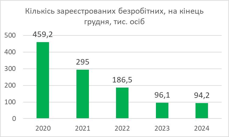 Как-то совсем незамеченной прошла новость, что количество зарегистрированных безработных на конец декабря 2024 достигло очередного исторического минимума — 94,2 тыс. лиц.