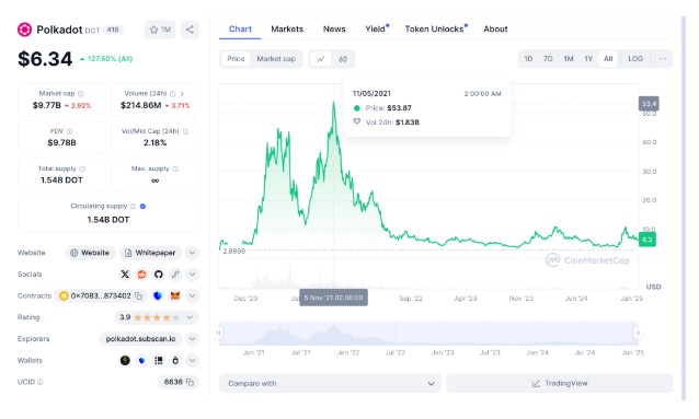 Polkadot (DOT) давно находится в центре внимания. Благодаря своей интероперабельности и инновационной технологии парачейнов, DOT занял место среди ведущих блокчейн-платформ. Его мощная экосистема и способность соединять различные блокчейны привлекли значительное внимание инвесторов.