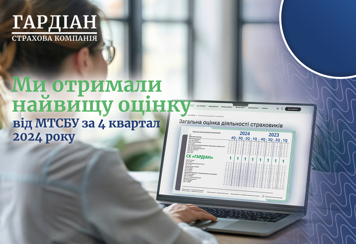 МТСБУ подвело итоги работы страховщиков за 4 квартал 2024 года, и СК «Гардиан» в очередной раз получила оценку — «1».