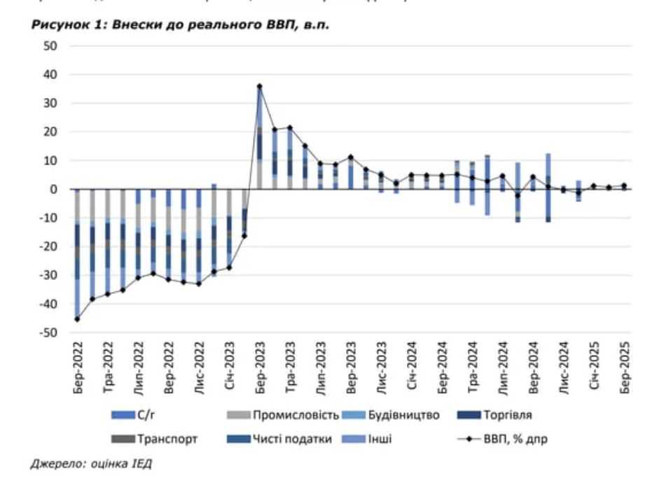 В первом квартале 2025 года реальный ВВП вырос на 1,1% к соответствующему периоду предыдущего года. Об этом идет речь в новом выпуске Месячного экономического мониторинга Украины Института экономических исследований и политических консультаций.