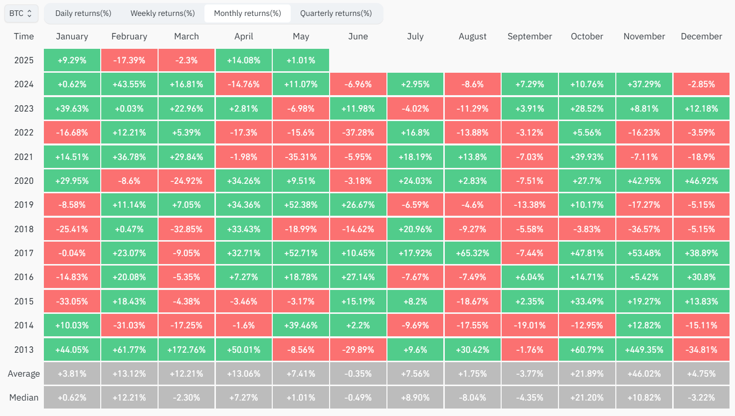 Биткоин закрыл апрель 2025 года с приростом в 14,08% после двух месяцев отрицательной динамики. Ethereum, со своей стороны, продолжает падать. В апреле его цена снизилась на 1,56%. Об этом свидетельствуют данные CoinGlass.