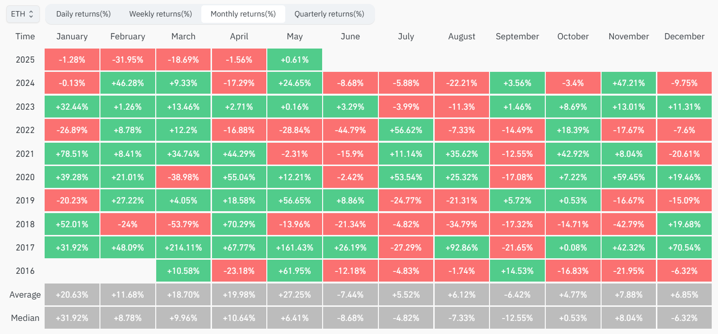 Ethereum продолжает падать пятый месяц подряд. При этом апрель чаще всего актив закрывал с приростом.