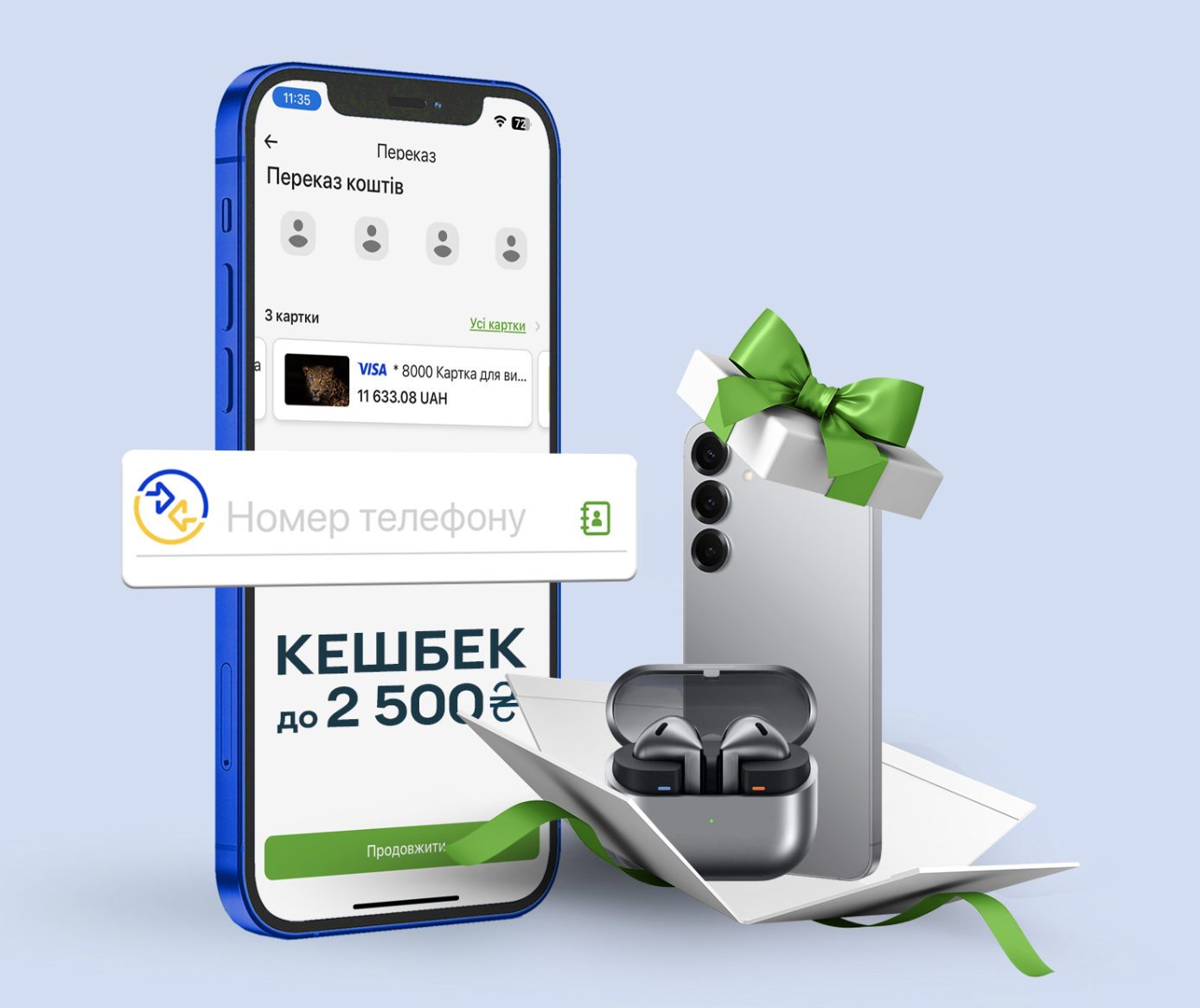 Для участия в розыгрыше кэшбэков и смартфонов Samsung Galaxy S25 и наушников Galaxy Buds 3 Pro нужно активировать услугу пополнения карты по номеру телефона в мобильном приложении Приват24, если еще не сделали этого, и отправить или получить перевод по номеру телефона с картой Visa на сумму от 250 грн.