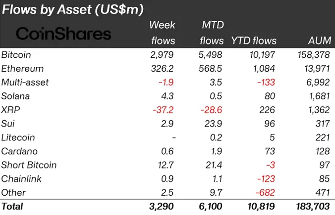 Инструменты на базе биткоина привлекли $2,98 млрд против $557 млн неделей ранее.