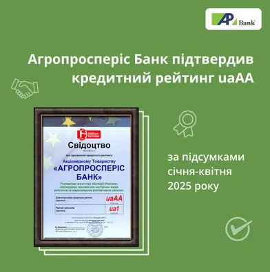 Агропросперис Банк подтвердил кредитный рейтинг на уровне uaAA по итогам января-апреля 2025 года