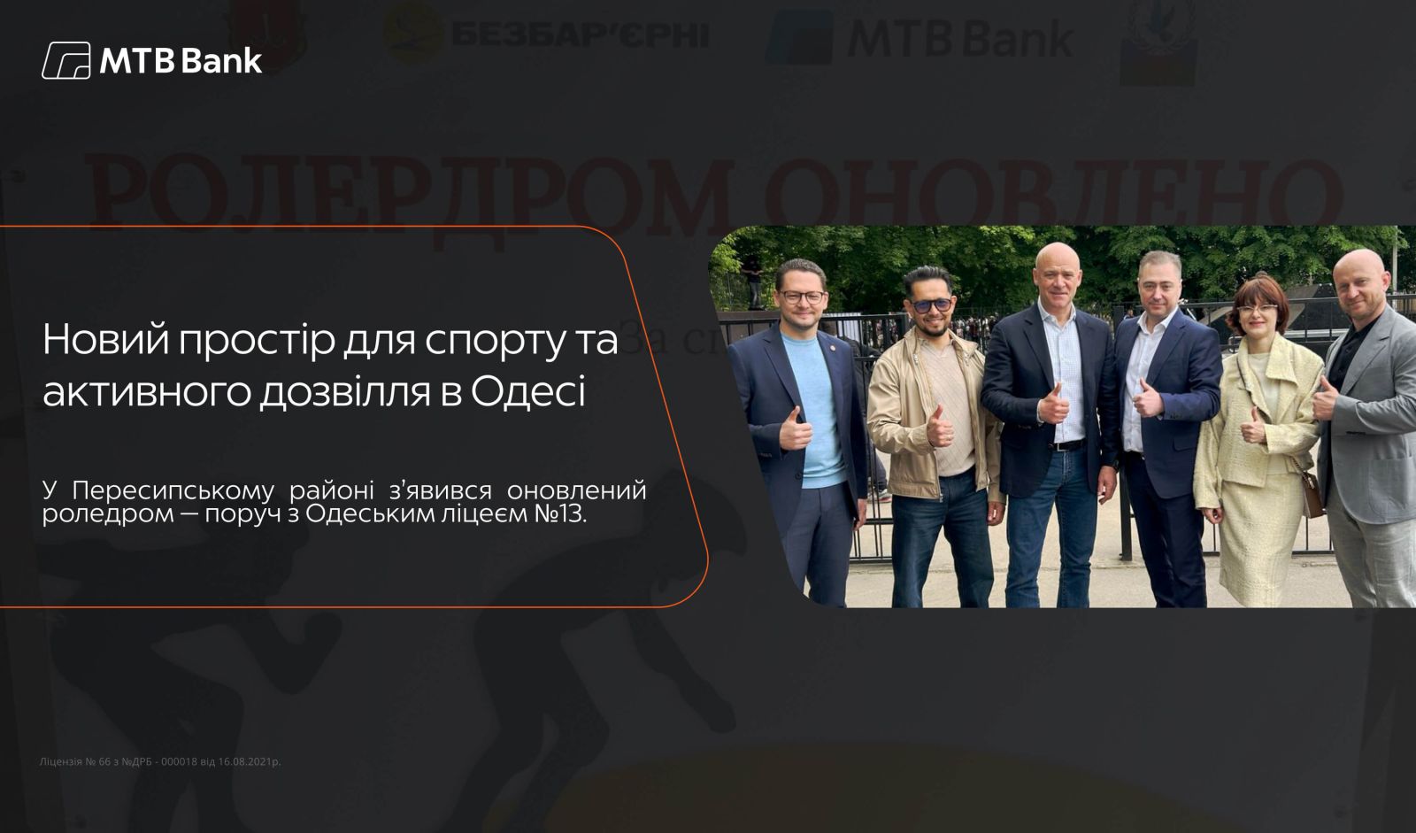 Этот проект стал реальностью благодаря синергии бизнеса и власти: финансовой поддержке МТБ Банка и содействию Одесскому городскому совету.