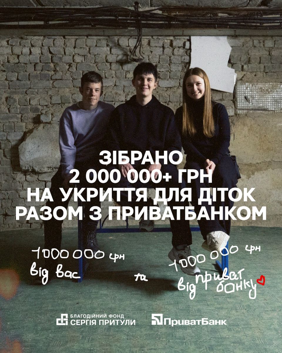 Приватбанк и Благотворительный фонд Сергея Притулы закрыли сбор на укрытие для школьников Харьковщины