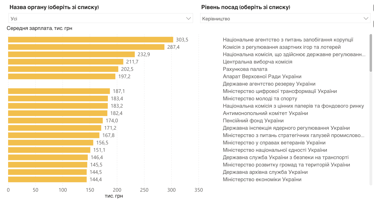 Средняя зарплата руководства ведомств составляет 128,4 тысяч гривен.
