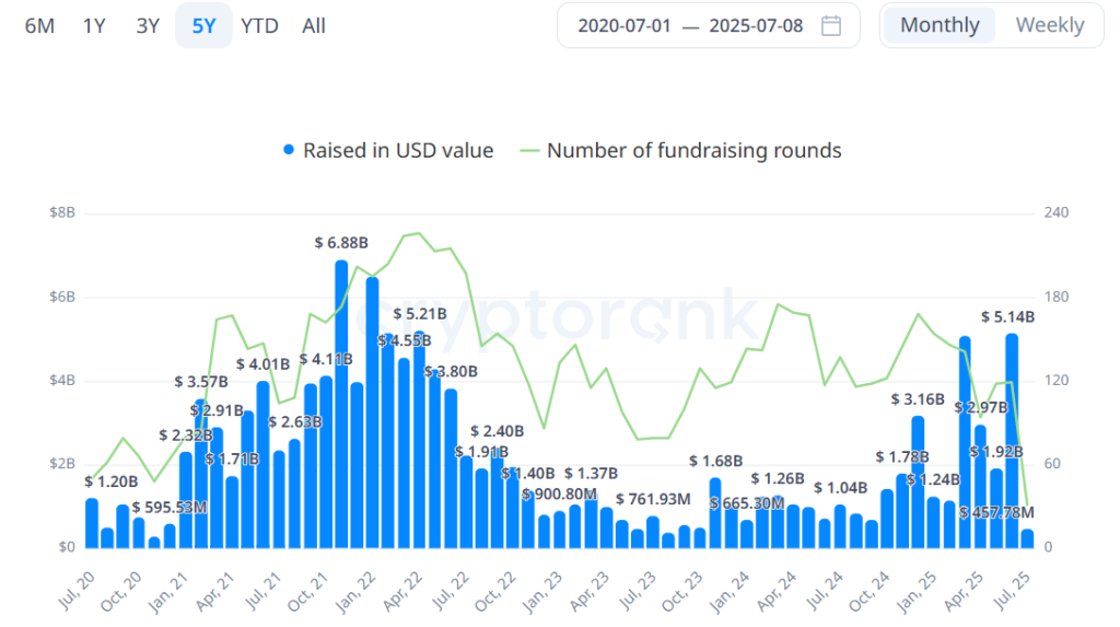 Во втором квартале 2025 года криптопроекты привлекли $10,03 миллиарда венчурных инвестиций.