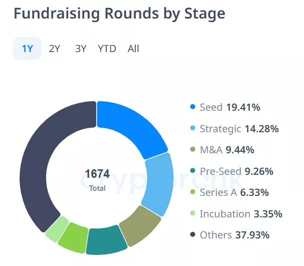 Больше всего средств поступило в проекты в сфере блокчейн-инфраструктуры и децентрализованных финансов (DeFi), Централизованные финансы (CeFi), NFT и GameFi получили умеренную поддержку, тогда как финансирование сегмента мемкоинов оставалось низким.