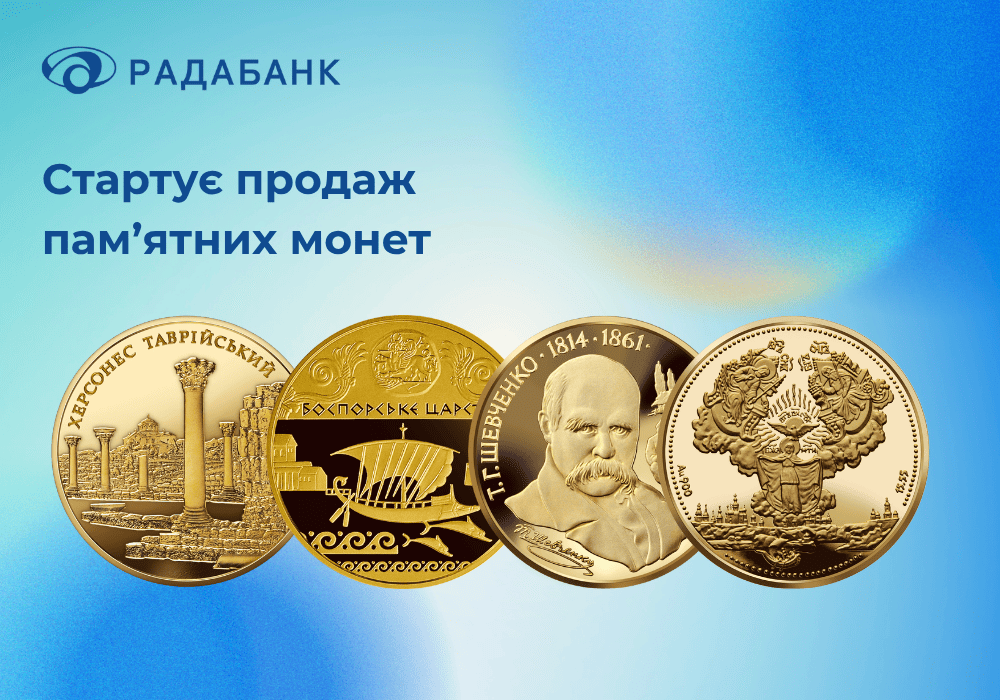 Радабанк объявляет старт продаж памятных золотых монет Национального банка Украины, отражающих величие украинской культуры, духовности и наследия. Каждое из них может стать изысканным подарком или ценным дополнением коллекции.