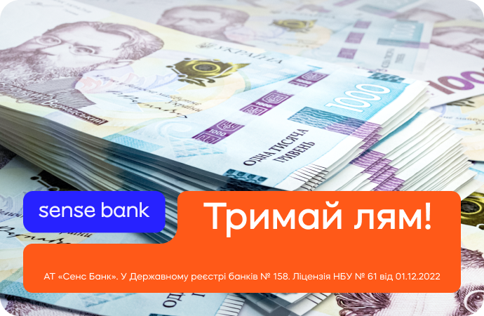 Sense Bank предлагает одну из самых гибких и диджитализированных моделей наличного кредитования на рынке. Наличный кредит в банке можно получить на сумму от 5 000 до 1 000 000 грн, сроком от 6 до 60 месяцев. Несмотря на формальную годовую ставку от 0,01%, фактическая стоимость кредита формируется за счет комиссии за обслуживание кредита и до 31.07 составляет 2,15−2,35% в месяц, реальная годовая процентная ставка зависит от размера и срока кредита, и может составлять от 46,85% — 60,55%.