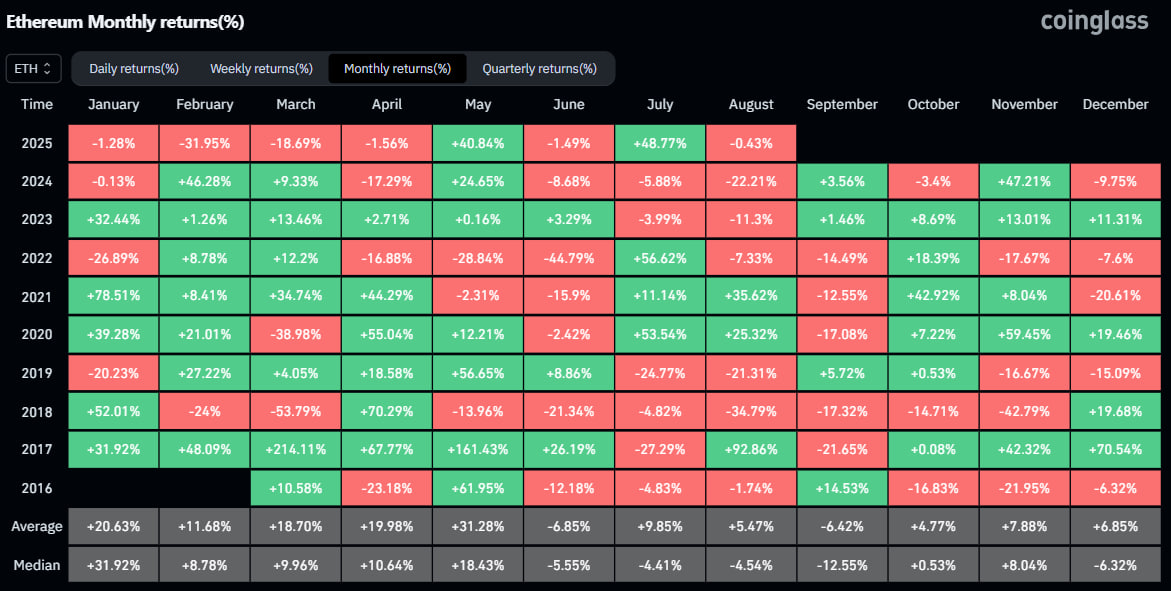 Июль 2025 стал месяцем значительного роста для криптовалютного рынка. По данным CoinGlass, Ethereum продемонстрировал впечатляющий взлет на 48,77%, в то время как цена биткоина выросла на 8,13%.