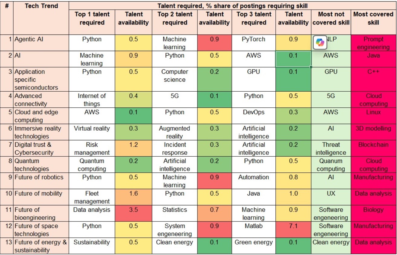 2. Есть сферы/тренды, в которых точно есть дефицит талантов — Quantum tech, Immersive reality, Advanced connectivity, Green tech. Наверное, это перспективные отрасли для обучения с точки зрения пока низкой конкуренции талантов.