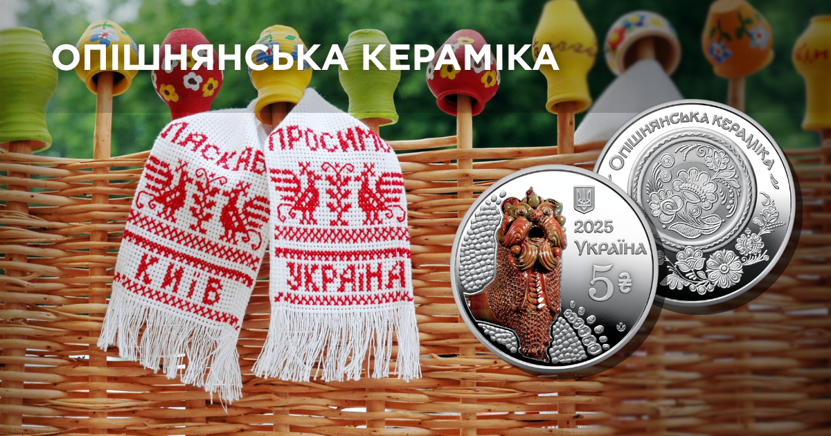 Памятная монета «Опошнянская керамика» посвящена традиционному гончарному искусству, которое сформировалось в поселке Опошня на Полтавщине и берет свое начало еще с XVII века. Опошненская керамика стала знаковым явлением национальной культуры — как в художественном, так и в этнографическом измерениях. Она сочетает в себе глубокую художественную самобытность и изящную технику исполнения, которые на протяжении веков сохраняются и передаются из поколения в поколение. В 2012 году опошненская керамика была внесена в Национальный перечень элементов нематериального культурного наследия Украины, что подтверждает ее значимость как составляющей культурной идентичности.