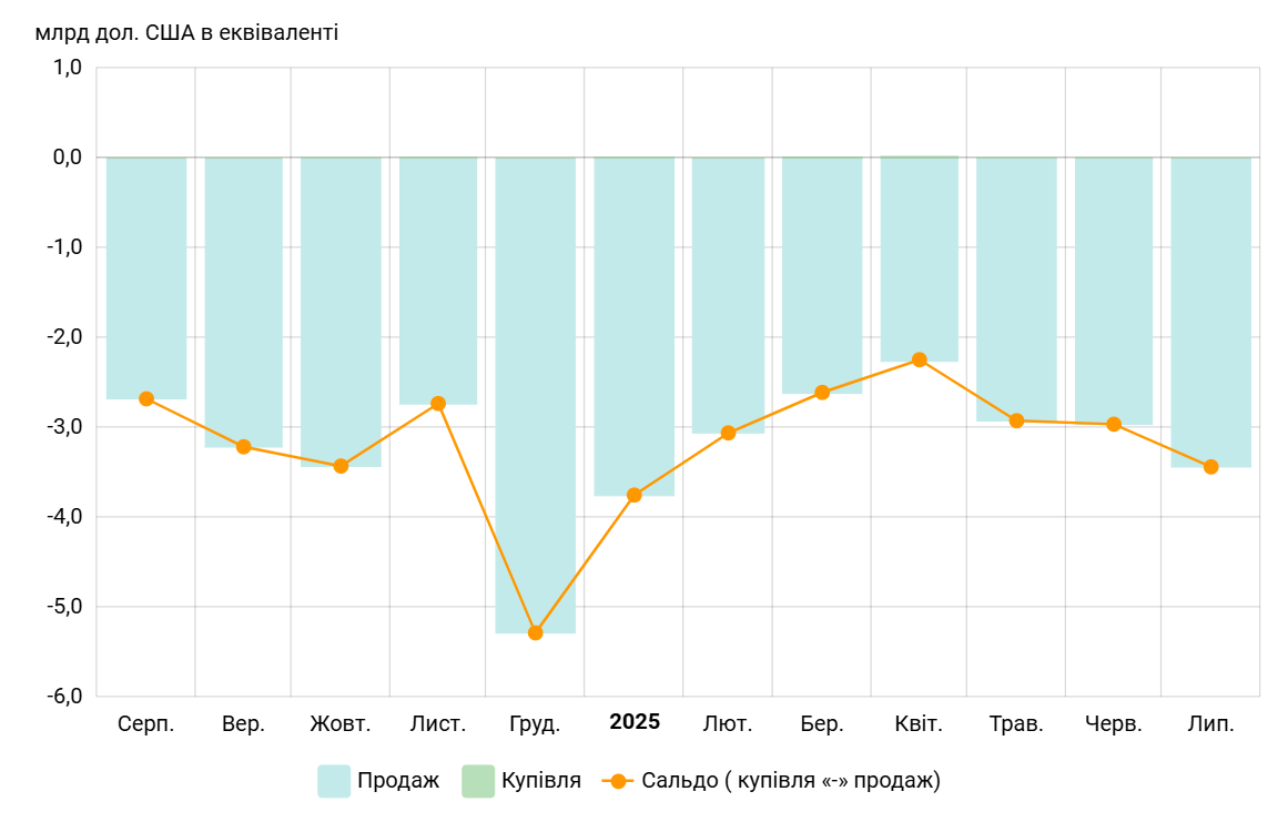 Национальный банк в течение недели, с 4 по 8 августа, на межбанковском валютном рынке купил $0,05 млн и продал $842,60 млн. Чистая продажа валюты составила $842,55 млн против $639,10 млн на прошлой неделе. Об этом свидетельствуют данные НБУ.