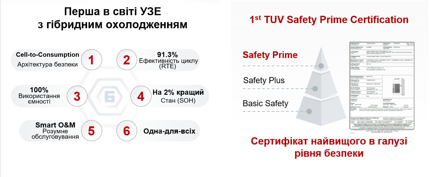 Вибір на користь Huawei був очевидним: компанія пропонує сертифіковані рішення з найвищим рівнем безпеки та гібридним охолодженням, що гарантує стабільну роботу навіть у найскладніших умовах. Крім того, LUNA2000−215 забезпечує максимальну ефективність і мінімальні витрати на обслуговування, що робить інвестицію прогнозовано вигідною.