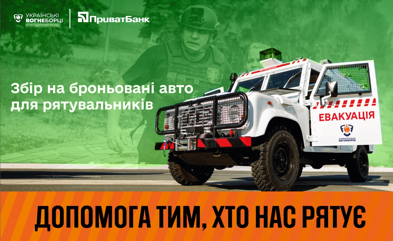 Приватбанк и «Украинские пожарные» объявляют сбор на бронированные авто для спасателей