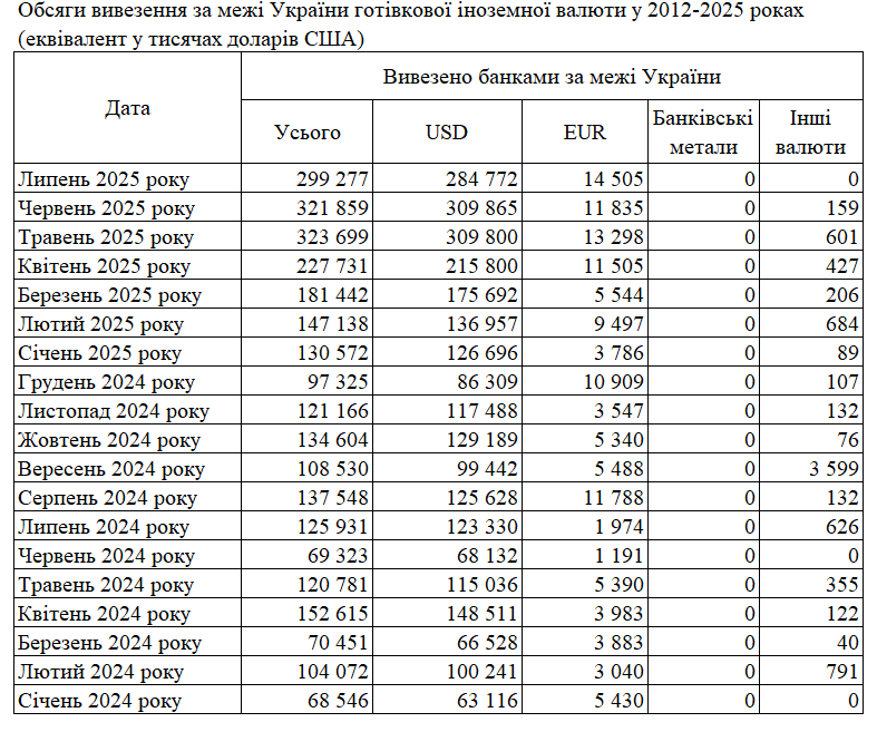По данным НБУ, объем наличной иностранной валюты, которую банки ввезли в Украину в июле 2025 года, составил $732 млн.