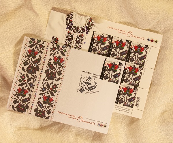 Почтовый набор включает в себя листы «Рубашка (фрагмент) Одесская область» и «Рубашка (фрагмент) Сумская область», 2 конверта «Первый день» и 2 карточки.