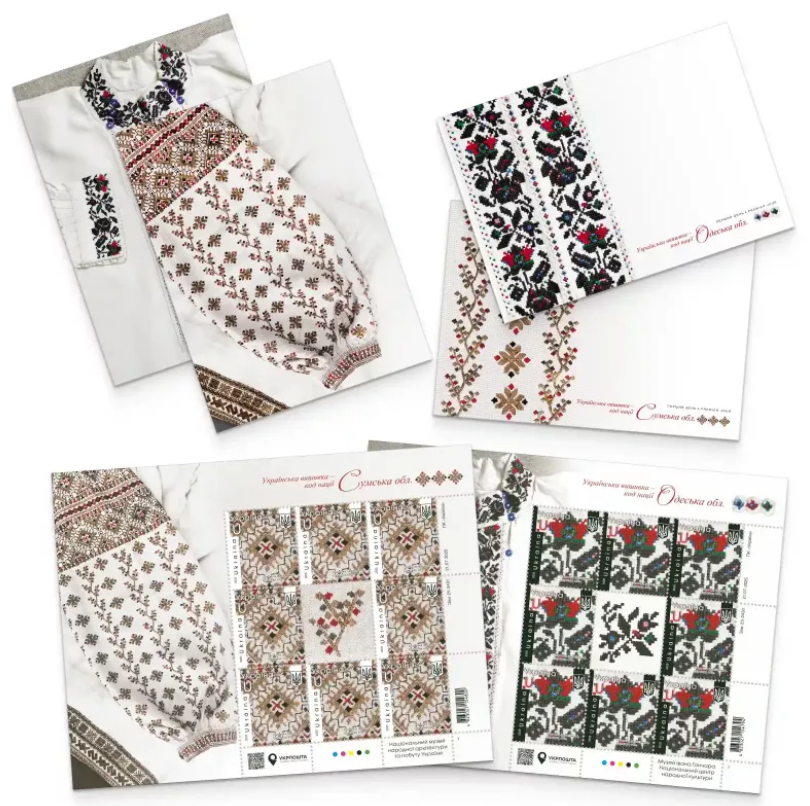 Почтовый набор включает в себя листы «Рубашка (фрагмент) Одесская область» и «Рубашка (фрагмент) Сумская область», 2 конверта «Первый день» и 2 карточки.