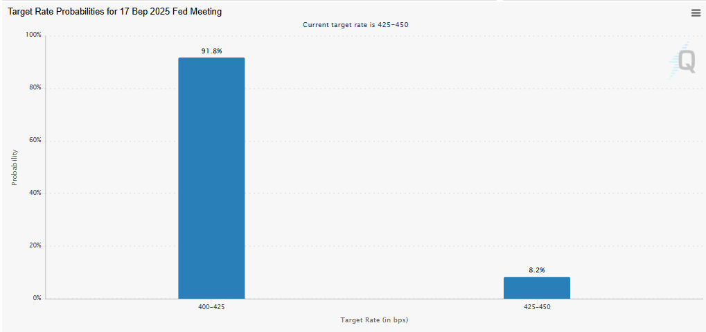 По данным экспертов, вероятность смягчения монетарной политики США оценивается в 91,8%. Показатель вырос после выступления главы ФРС Джерома Пауэлла на симпозиуме в Джексон-Хоуле.