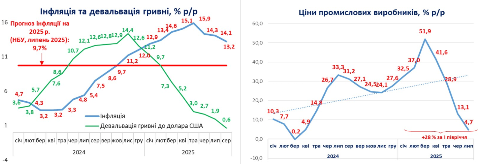 Полгода назад НБУ прогнозировал 8,7% инфляции на 2025 г., а год назад — 6,6%! НБУ за годы войны так и не перестроил свой инструментарий под вызовы военной экономики и потому постоянно проваливается в своих прогнозах.