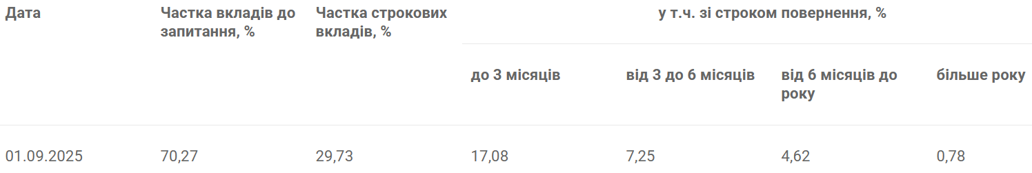 Доля ФОП в структуре вкладчиков по состоянию на 1 сентября 2025 составила 3,1%, а в структуре суммы вкладов — 11,5%.