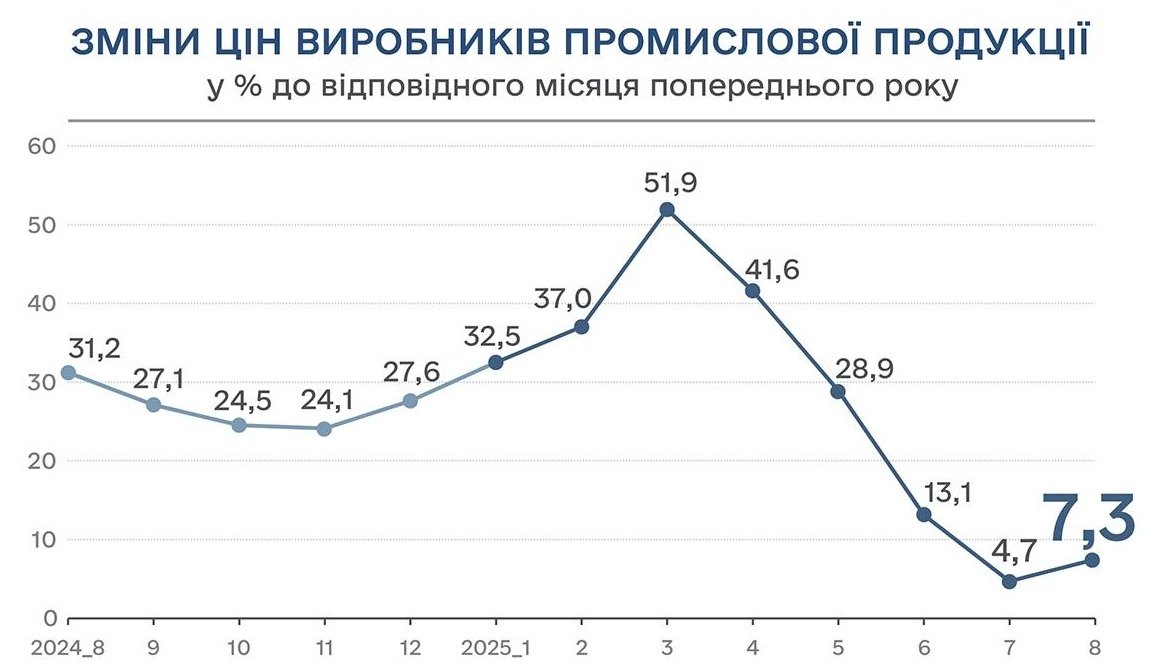 В августе 2025 года рост цен производителей промышленной продукции ускорился до 7,3% в годовом исчислении, в то время как месяцем ранее составил 4,7%. Об этом говорится в данных Государственной службы статистики.