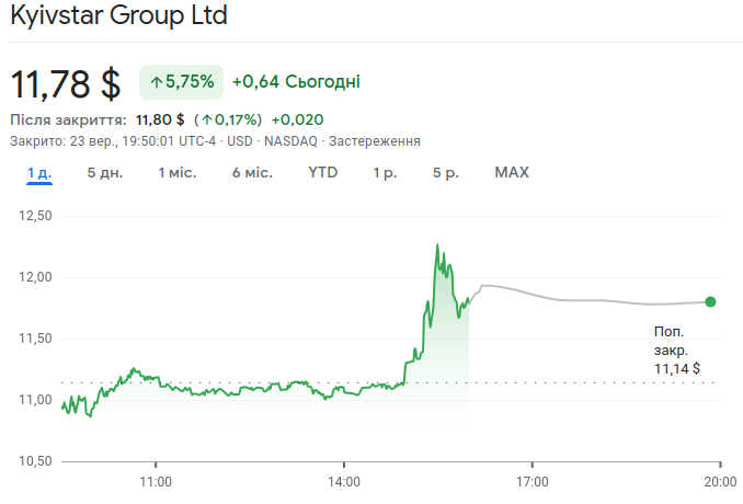 Акции украинского телекоммуникационного оператора «Киевстар» (тикер $KYIV) во вторник продемонстрировали значительный рост. Котировки закрылись на 8,3% выше, на отметке $11,78, а в течение торговой сессии рост превышал 10%. Ралли было вызвано заявлениями президента США Дональда Трампа, которые рынок расценил как усиление поддержки Украины.
