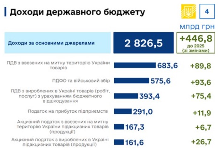 Собственные доходы — то есть сколько мы сможем собрать самостоятельно. Планируется, что экономика Украины в условиях пятого года войны сможет нарастить поступления почти на 16%, или на 446,8 млрд грн, — до 2,8 трлн грн.