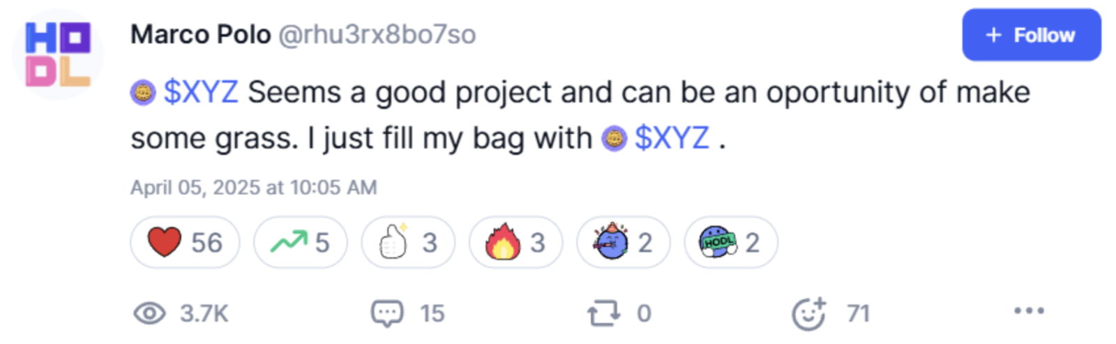 XYZ также привлек внимание авторитетных крипто-инфлюенсеров. DanjoCapitalMaster, у которого почти 800 000 подписчиков, недавно выразил свою поддержку проекту, назвав XYZVerse «шансом на успех».
