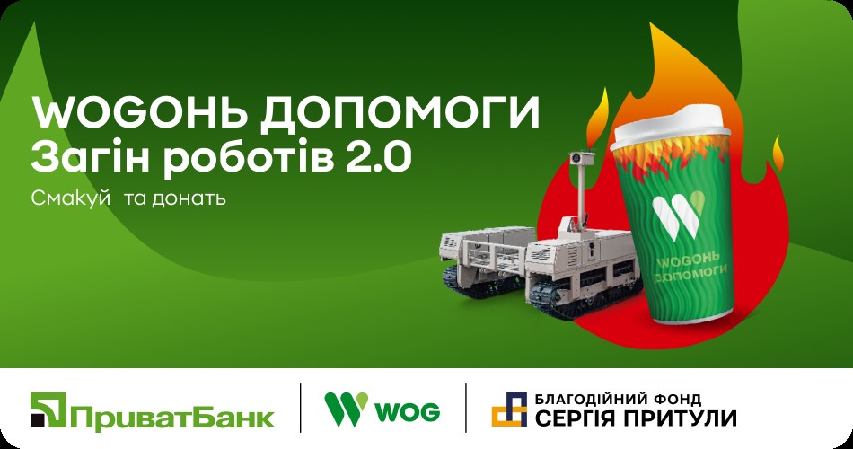 Сеть АЗК WOG, Благотворительный фонд Сергея Притулы и Приватбанк запускают проект «Wоgонь Допомоги. Отряд роботов 2.0». Его цель: уже во второй раз собрать «отряд» наземных роботизированных комплексов.