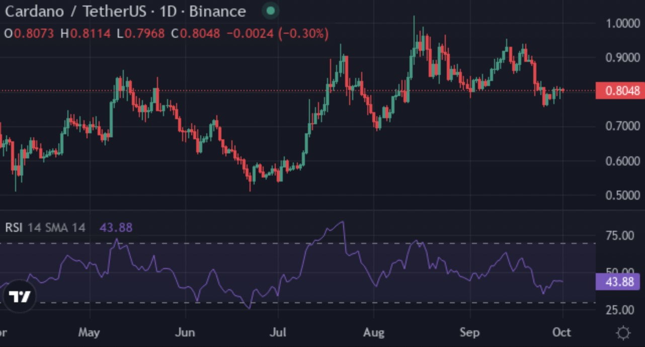 ADA торгуется между 0,75 и 0,88 после плоской недели, которая сократила 0,25%. Это падение добавляется к небольшому снижению на 0,98% за месяц, но токен по-прежнему демонстрирует рост на 23,47% за 6 месяцев. Большая часть активности сосредоточена вблизи отметки 0,80, где находятся 10-дневная и 100-дневная скользящие средние, что свидетельствует о балансе между покупателями и продавцами.