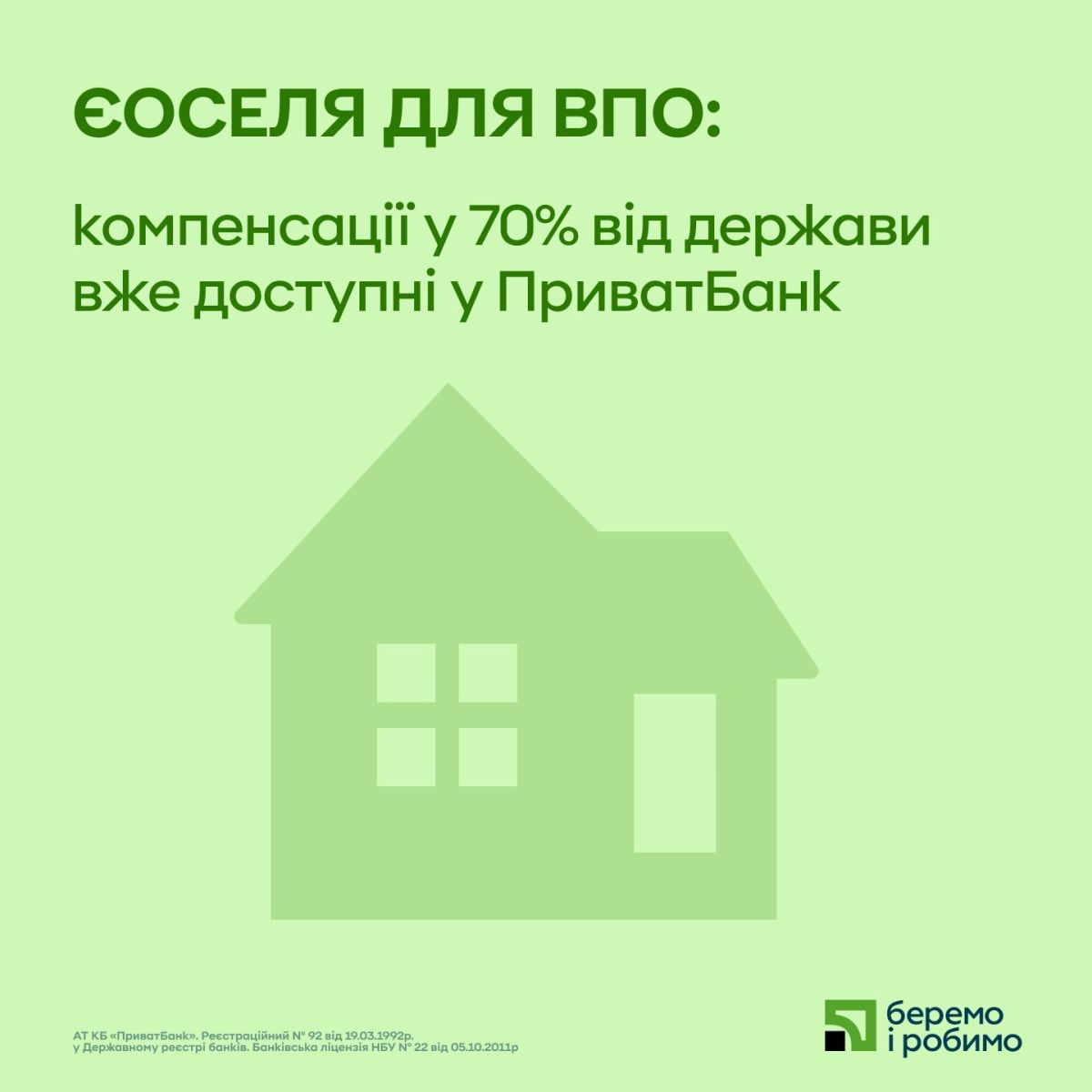єОселя для ВПЛ: как получить 70% компенсации от государства через Приватбанк