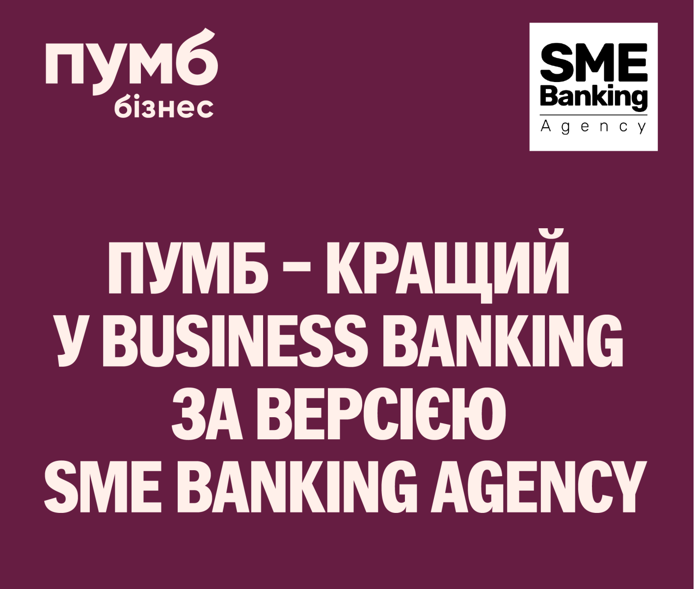 ПУМБ (Первый Украинский Международный банк) отмечен в ежегодном международном рэнкинге Business Banking 2025 в Украине от профильного информационно-аналитического агентства SME Banking Agency.
