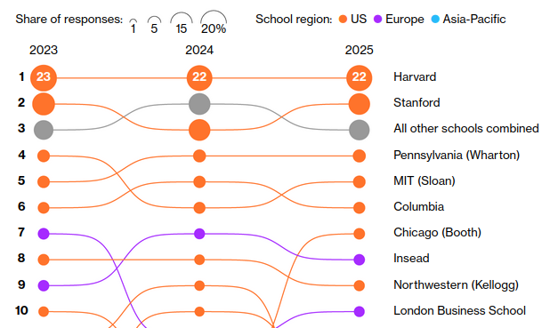 В опросе, который определяет самую желанную бизнес-школу, Гарвард уверенно обошел своих конкурентов.