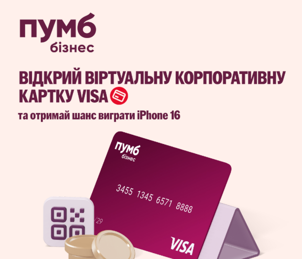 ПУМБ предлагает предпринимателям открыть виртуальную корпоративную карту Visa и шанс выиграть iPhone 16