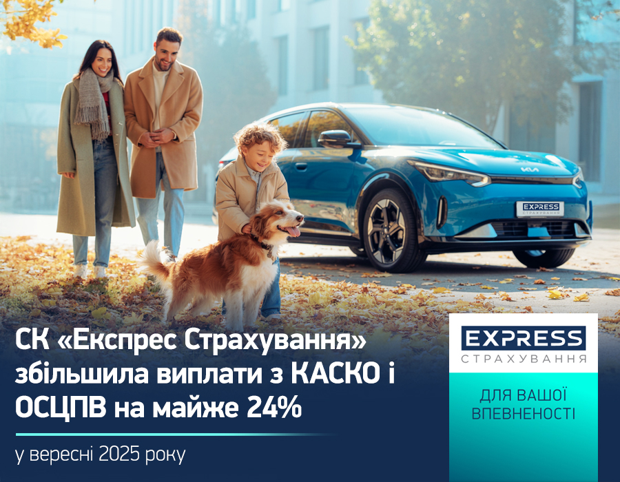 В сентябре 2025 года СК «Экспресс Страхование», входящая в Укравто Групп, увеличила выплаты клиентам по договорам КАСКО и ОСАГО на 23,5% по сравнению с августом с.г. — до 53,8 млн грн.