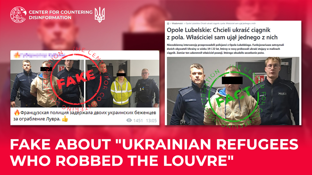 Российские пропагандистские ресурсы запустили новую дезинформационную кампанию, распространяя фейк о якобы задержании французской полицией двух украинских беженцев за кражу ценностей из музея Лувр в Париже. Центр противодействия дезинформации опровергает эту информацию.
