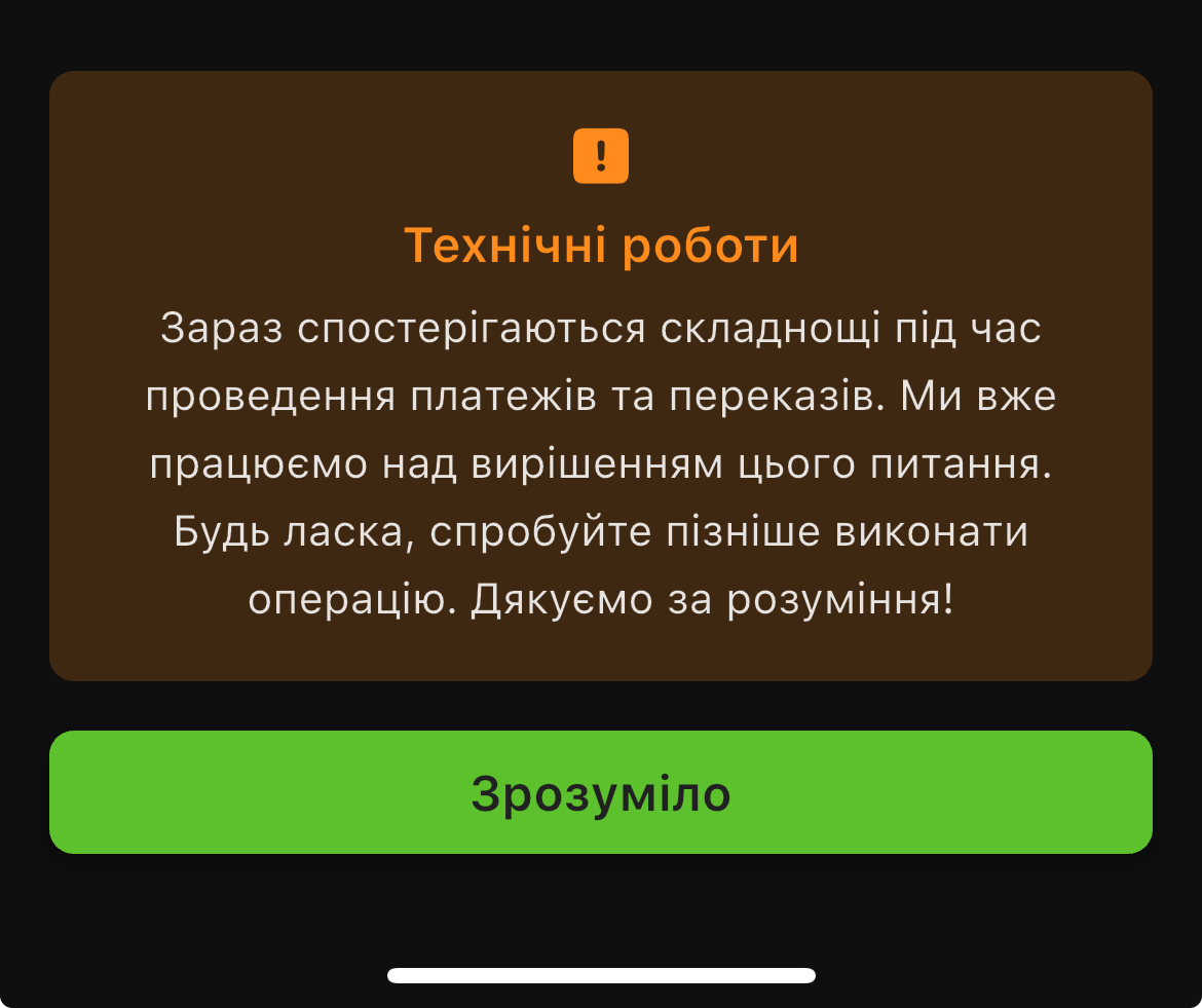 «Перевод или платеж не проходит? Мы все видим и уже чиним. Техническая команда работает, чтобы как можно быстрее все восстановить», — говорится в сообщении.