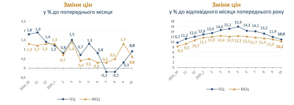 Инфляция на потребительском рынке в октябре 2025 года по сравнению с сентябрем составила 0,9%, с октябрем 2024 — 10,9%. Базовая инфляция в октябре 2025 года по сравнению с сентябрем составила 0,6%, с октябрем 2024 — 10,2%. Об этом говорится в данных Госстата.