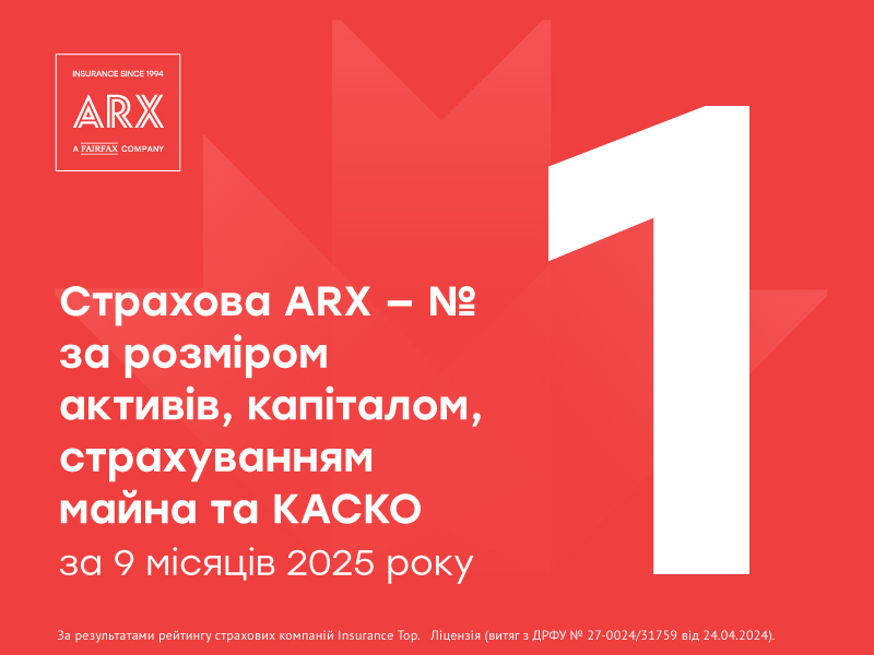 По результатам первых 9 месяцев 2025 года страховая компания ARX вновь подтвердила своё лидерство на украинском рынке. Согласно рейтингу страховых компаний Insurance Top компания занимает: