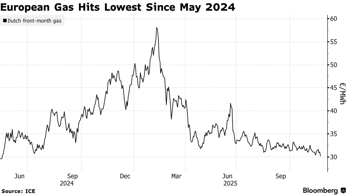 Отмечается, что эталонные фьючерсы опустились до самых низких показателей с мая 2024, поскольку прогнозы более мягкой погоды свидетельствуют о снижении спроса на отопление.