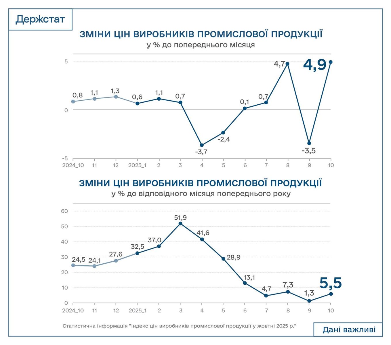 Цены украинских производителей в октябре 2025 года достигли максимума за последние 15 месяцев
