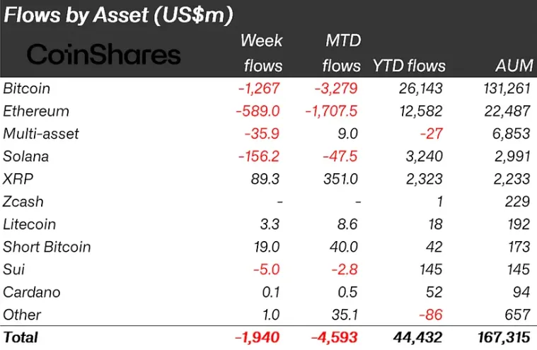 Единственным исключением, привлекшим инвестиции, стала криптовалюта XRP — в связанные с ней инструменты было вложено $89,3 млн. Кроме того, инструменты для открытия коротких позиций по биткоину продолжают привлекать интерес, привлекая за неделю $19 млн.