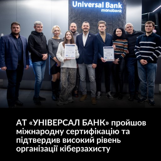 Кроме того, система управления информационной безопасностью банка отвечает требованиям как международного стандарта, так и украинского аналога ДСТУ ISO/IEC 27001:2023, а также регуляторным требованиям НБУ. Получение сертификата — важный стратегический шаг, который укрепляет нашу позицию надежного и технологически развитого банка Украины.